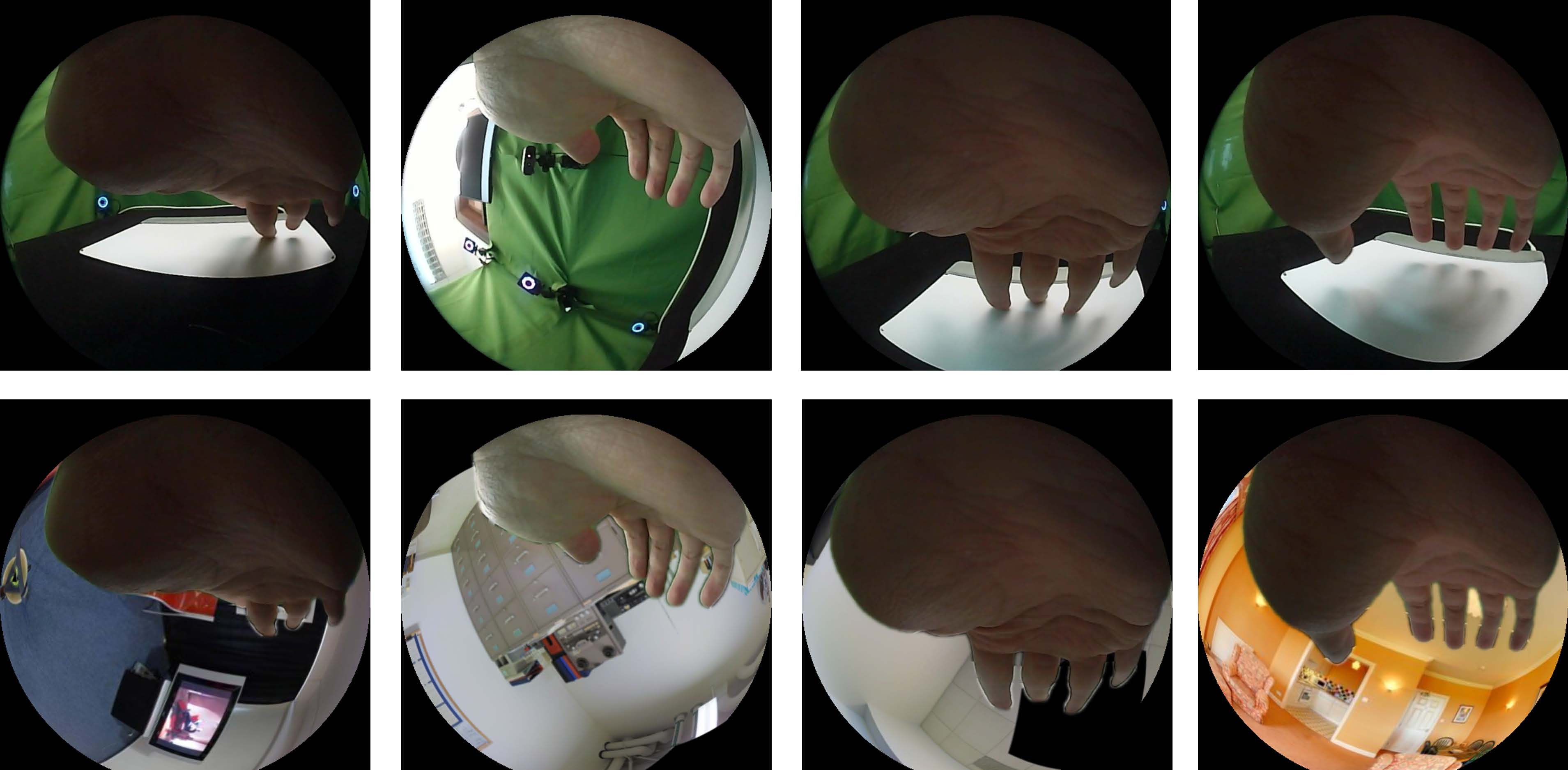 WristP2 is a wrist-worn system with a wide-FOV fisheye camera that reconstructs 3D hand pose and per-vertex pressure in real time.